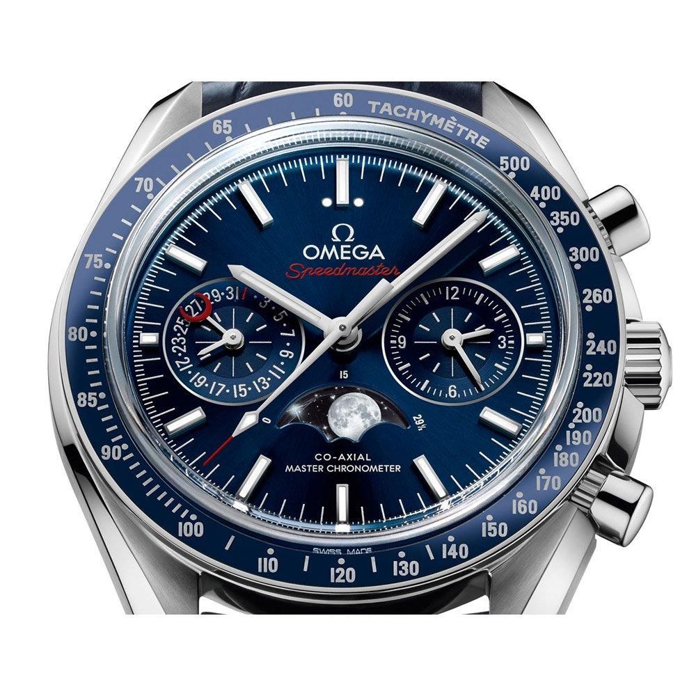 「スピードマスター」/「オメガ スピードマスター」は、6回の月面着陸プロジェクトに携帯された、オメガを代表するタイムピースのひとつです。更なる進化を遂げたこの新しいムーンフェイズモデルは、写実的な月が特徴です。