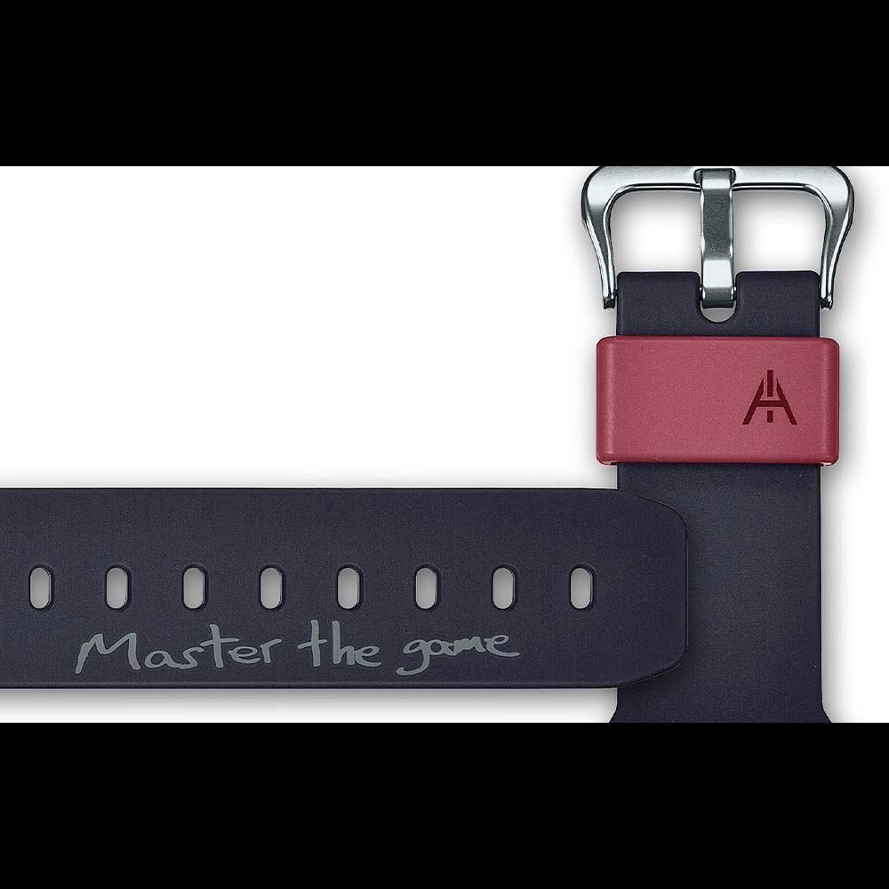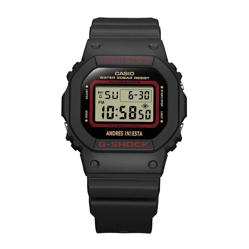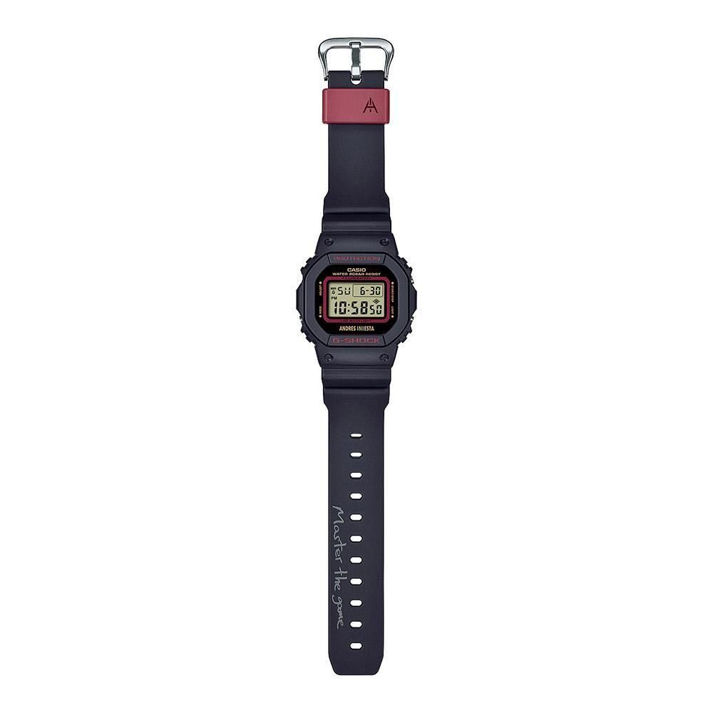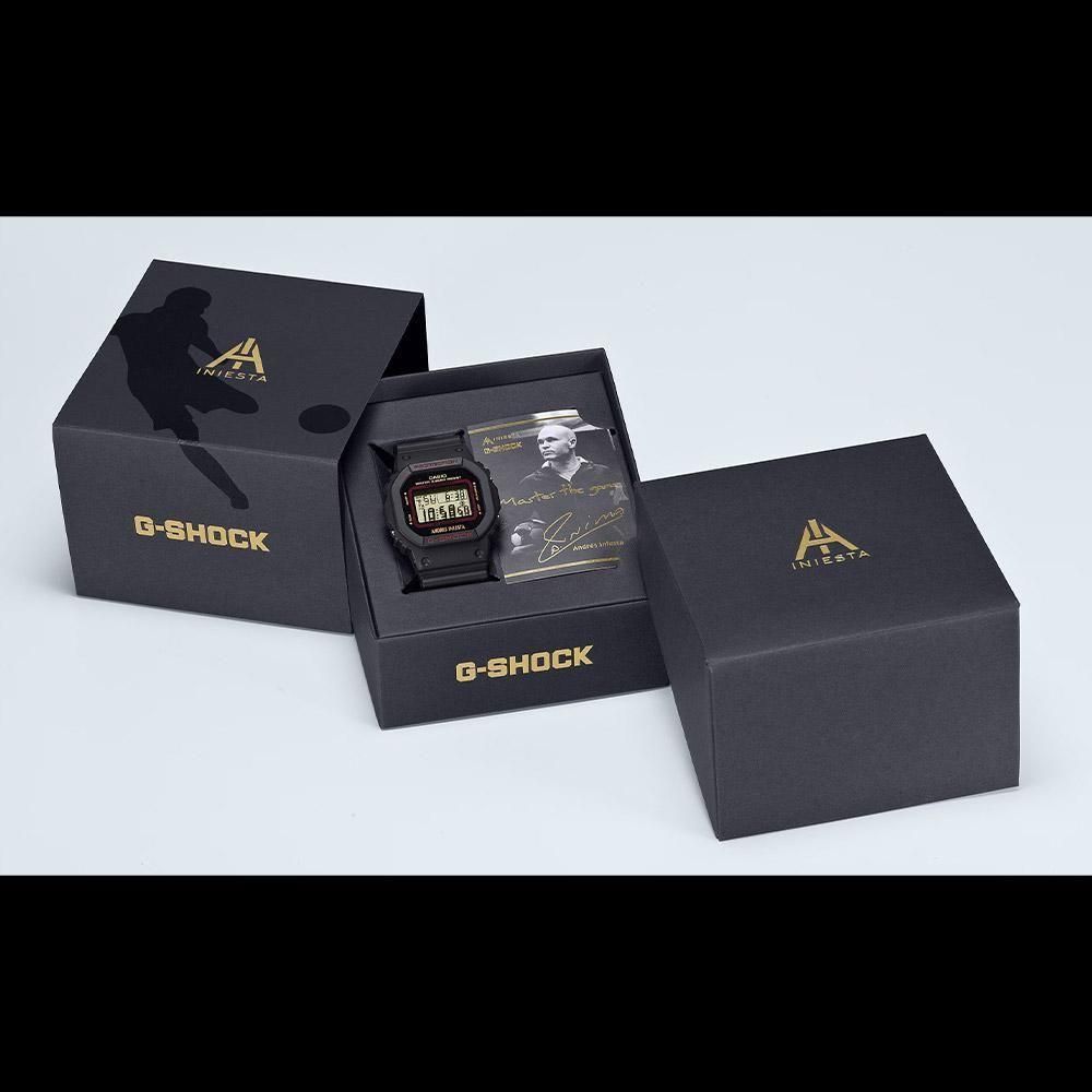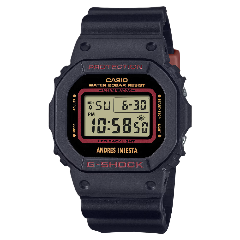 1983年の発売からあくなき強さを求めて進化を続けるタフネスウオッチG-SHOCKから、世界的なプロサッカー選手、アンドレス・イニエスタ選手のシグネチャーモデルです。ベースモデルにG-SHOCKを代表するDW-5600を採用。ベースカラーのブラックにイメージカラーであるレッドを随所にあしらい、バンドにはイニエスタ選手を象徴するワード、"Master the game"の直筆をプリント。遊環にはオリジナルのロゴ、バックライトにはイニエスタ選手のシルエットが浮かび上がる仕様にしました。また、8時側のサイドボタンには背番号8をレーザー刻印し、ディテールを随所に取り込みました。ファン待望の特別な1本をスペシャルパッケージでお届けします。