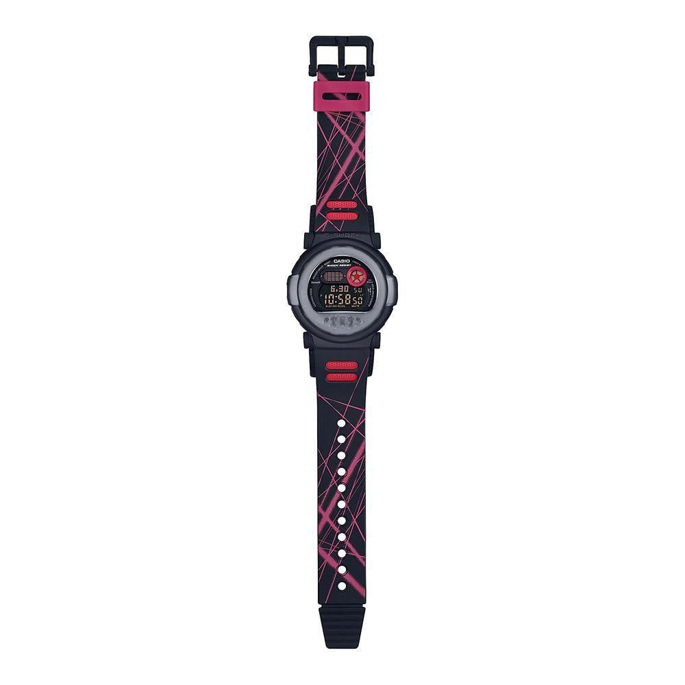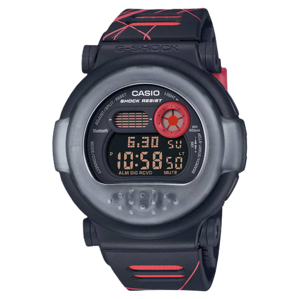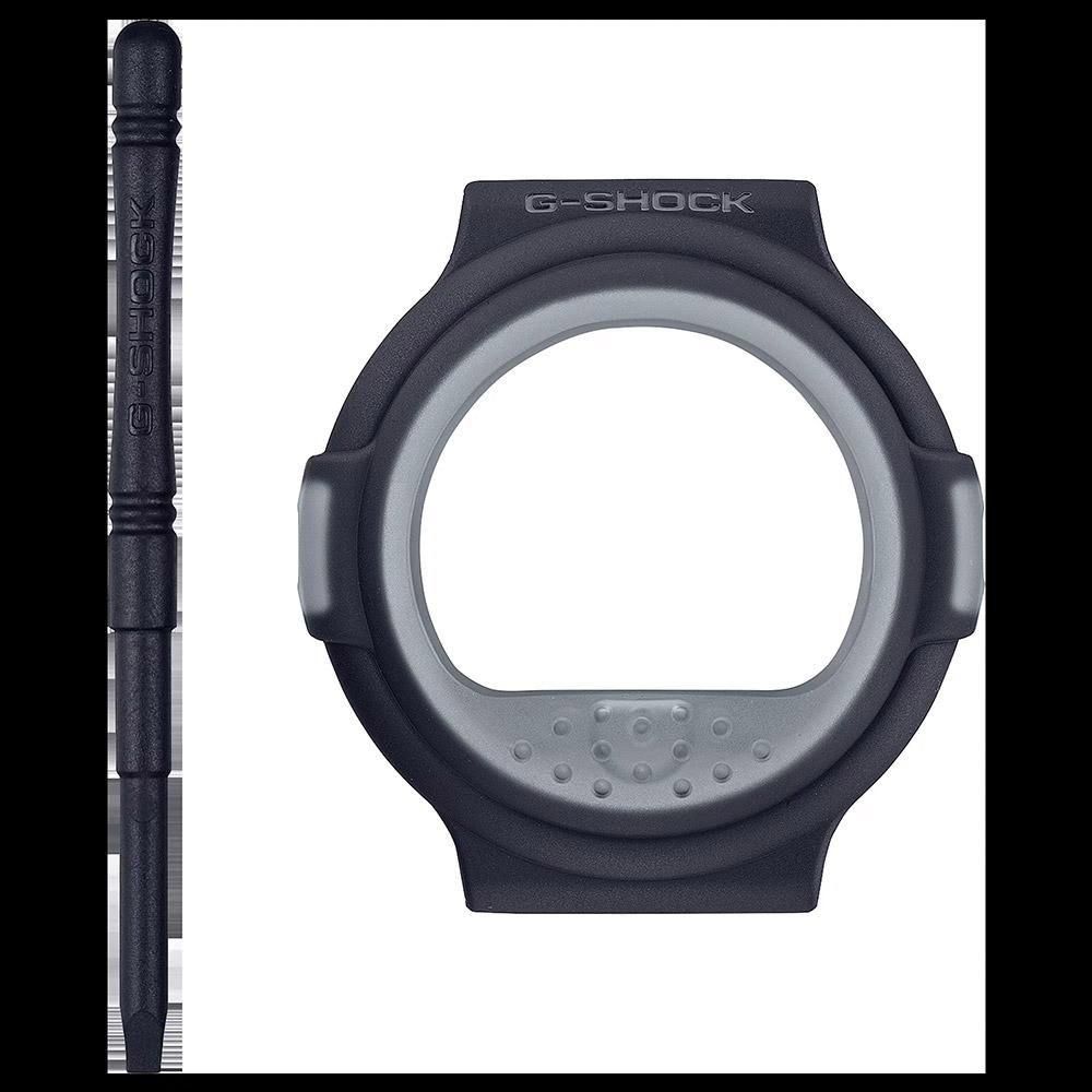 1983年の発売以来、飽くなき強さを求めて進化を続けるタフネスウオッチG-SHOCKから、スマートフォンリンク機能を搭載し、ベゼル交換のギミックを採用したG-B001シリーズです。G-B001は、1994年に登場したCapsule Toughをコンセプトに誕生したDW-001を進化させたモデルです。オリジナルのフォルム、耐衝撃構造はそのままに、カーボンコアガード構造を採用し、メタルベゼルのケースを更に樹脂ベゼルでガードしました。ブラックをベースにシルバーのメタルベゼル、バンド印刷を採用したユニークなデザインの一本です。