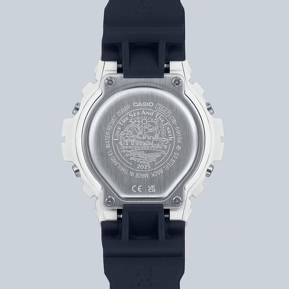 「Love The Sea And The Earth」というテーマのもと、イルカ・クジラを通じて自然の素晴らしさを伝える活動に取り組む「アイサーチ・ジャパン」とのコラボレーションモデルです。2025年は大きな胸びれが特徴の「ザトウクジラ」をデザインモチーフに採用。ツートンカラーの体色をコントラストの強い配色で表現し、ディープブルーにはザトウクジラが回遊する遠洋のイメージを重ねています。バンドには「ICERC Japan」のロゴをプリントし、裏蓋には「Love The Sea And The Earth」のシンボルマークを刻印しています。また、ベゼル、バンドの主な樹脂パーツには、環境に配慮しバイオマスプラスチックを使用しています。機能面では、タフソーラーや電波受信機能などを搭載。パッケージはリサイクル素材を使用しました。愛らしいシルエットやパターンを随所にあしらったスペシャルモデルです。