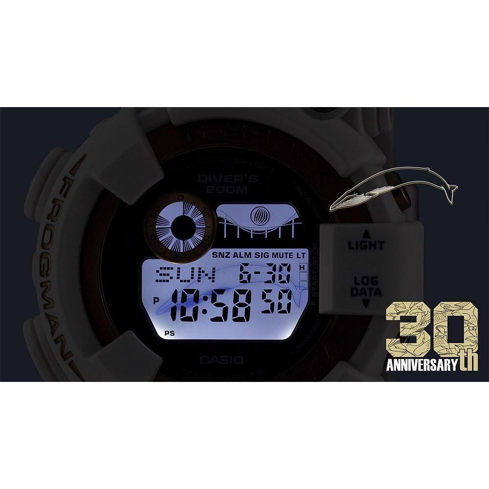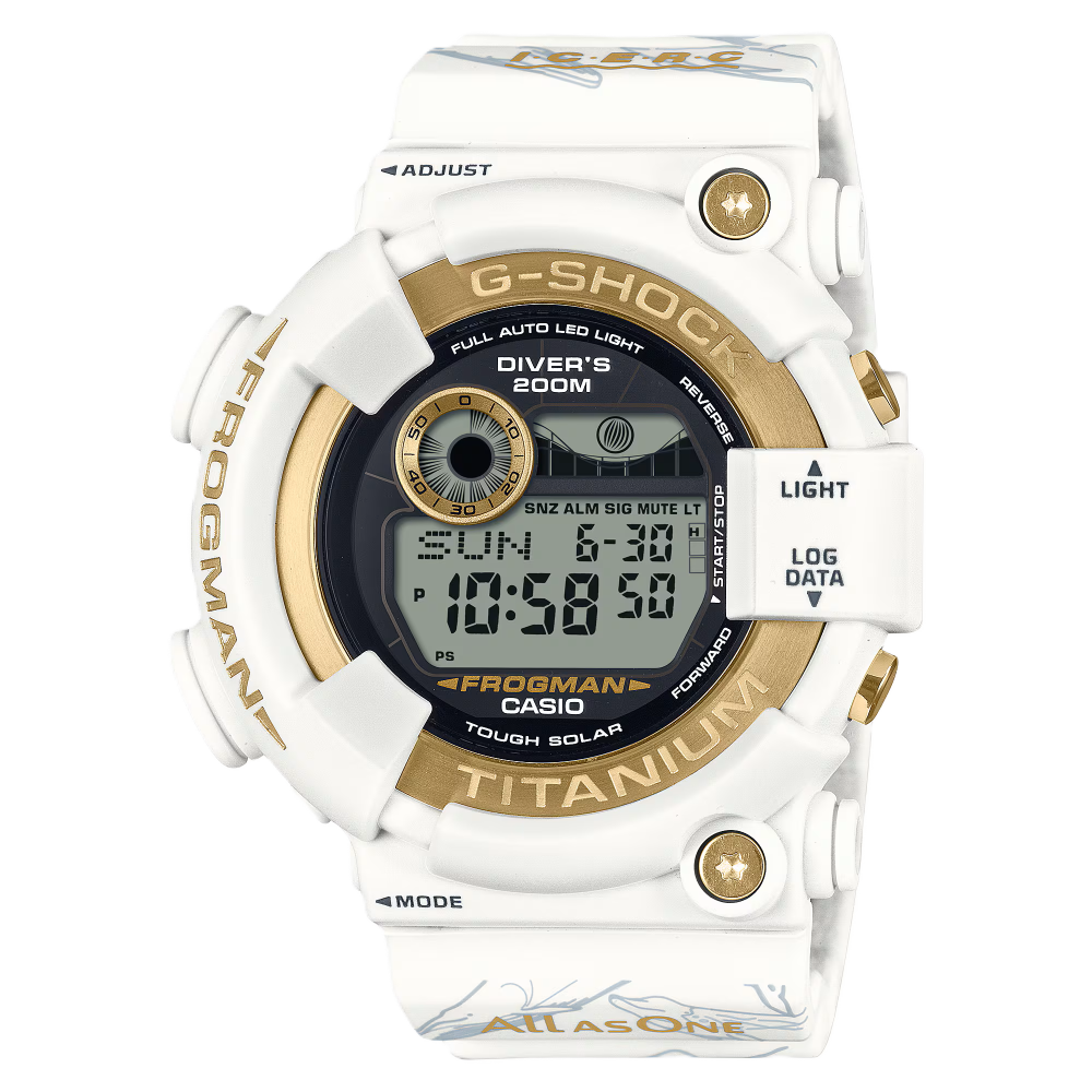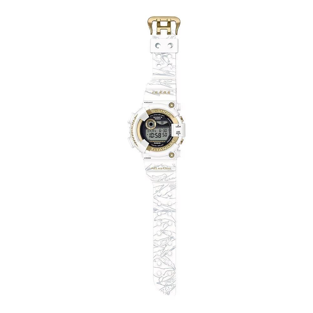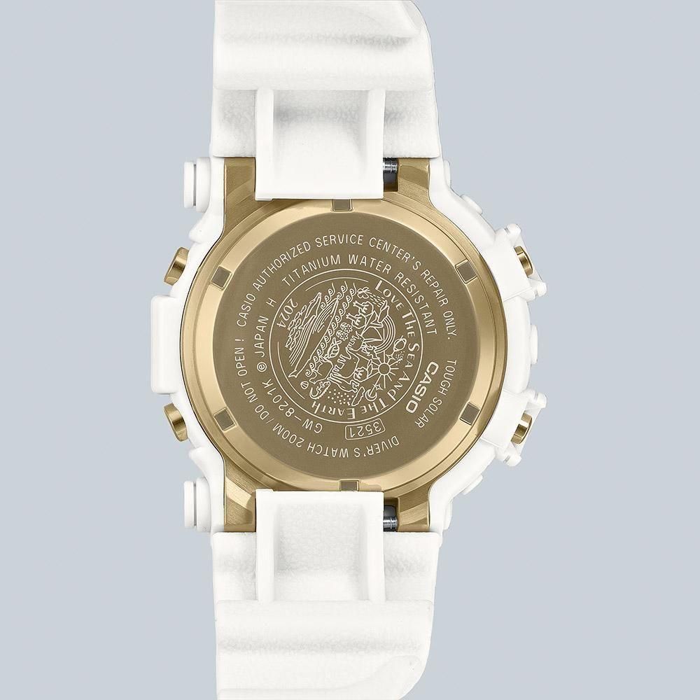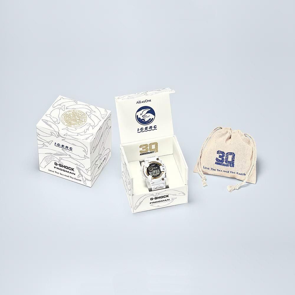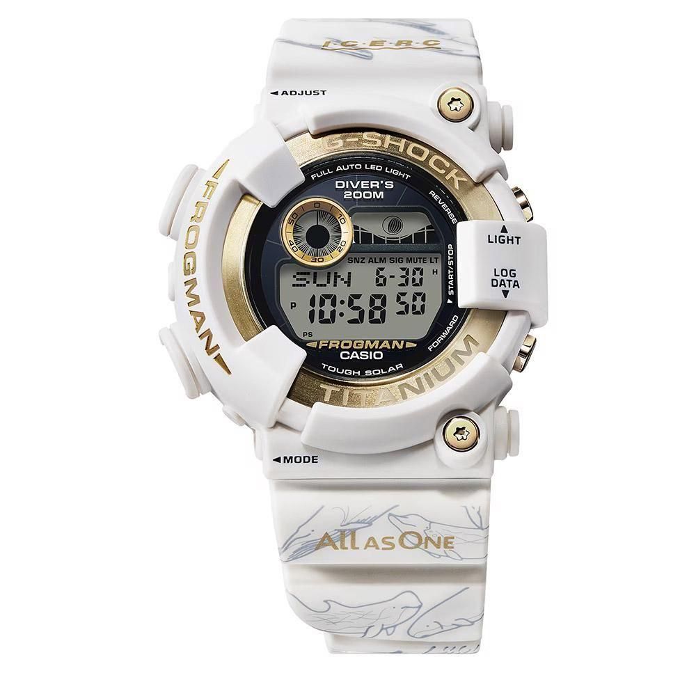 イルカ・クジラと自然の素晴らしさを伝える活動に取り組む「ICERC Japan」とのコラボレーション30周年記念モデルです。2024年は、アニバーサリーイヤーを記念してバンドと液晶に30頭のクジラのイラストをデザイン。随所にゴールドのアクセントカラーをあしらいました。LEDバックライト点灯時、液晶にシロナガスクジラのシルエットが浮かび上がります。タフソーラーを備え、蛍光灯のわずかな光でも発電し、強負荷のかかる各種機能を安定駆動。定期的な電池交換の手間を省きます。また、ベゼル、バンドの主な樹脂パーツにバイオマスプラスチックを採用。裏蓋に「Love The Sea And The Earth」のシンボルマークを刻印しました。リサイクル素材を使用し環境に配慮したスペシャルパッケージでお届けします。