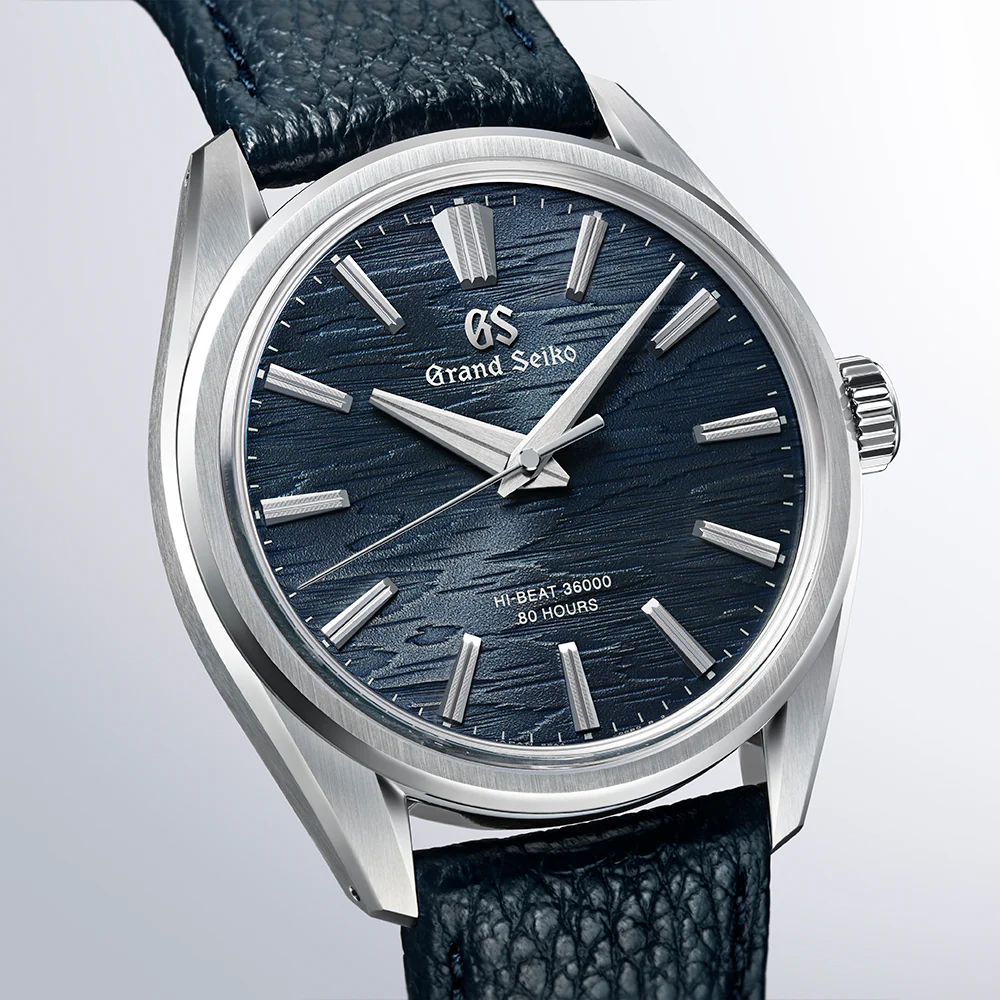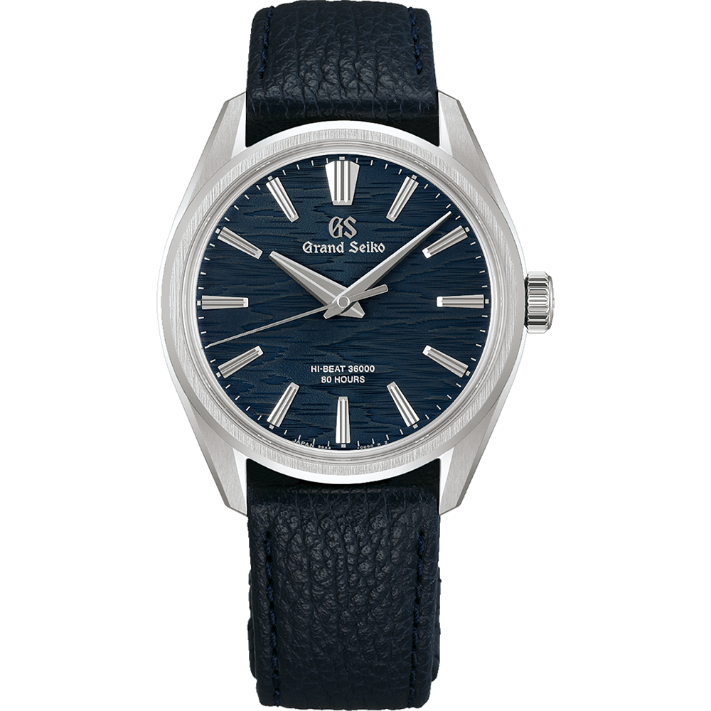 グランドセイコーの真髄と日本の美意識を高い次元で融合させた独自のデザイン文法「エボリューション9スタイル」をベースにした、10振動手巻メカニカルウオッチです。ネイビーカラーのダイヤルは、月あかりに照らされた白樺の樹皮をイメージしました。ステンレススチール製のケースは厚さ9.95mmと薄型に仕上げ、すっきりとしたインデックスやベゼル、ラグの幅が、グランドセイコーのドレスウオッチにふさわしい繊細で優美なる存在感を演出。ムーブメントには、安定した精度につながる毎秒10振動という高い振動数と、最大80時間もの長い持続時間を実現する「キャリバー9SA4」を搭載しています。