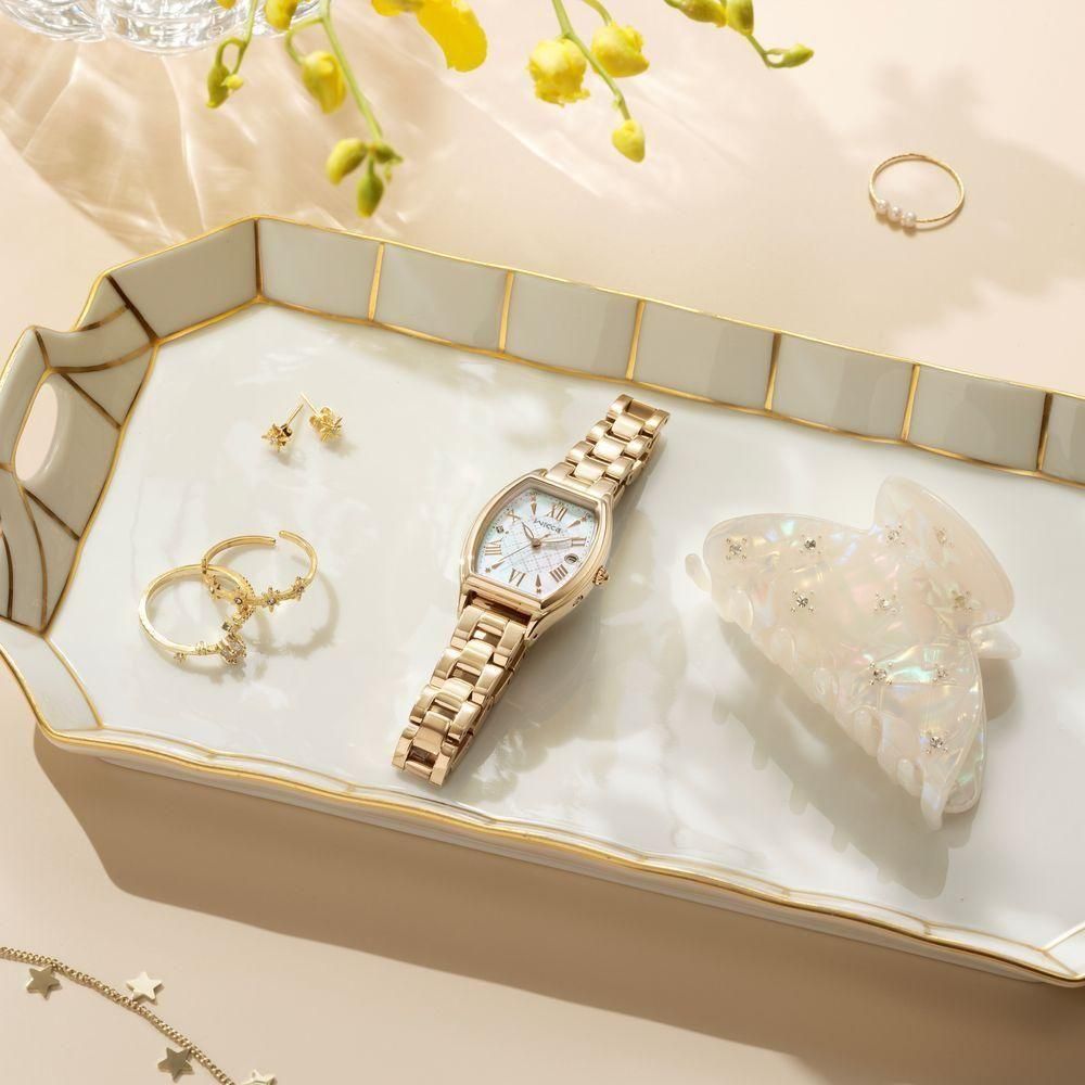 「inner star」をテーマにしたベーシックなトノー型電波時計より、華やかな白蝶貝文字板を採用した限定モデルが登場。デザインテーマである「inner star」には、「自分の中にスターを持つことで自信を持ち、前に進めますように」という想いを込めています。