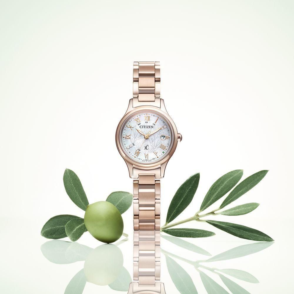 クロスシーのイメージキャラクター・北川景子さんがデザイン監修を手がけた、限定モデルです。「安らぎ・平和・知恵」などの花言葉を持つ“オリーブ”をモチーフに、クリーンで艶やかな白蝶貝の文字板に、立体感のあるオリーブの葉と実をエッチングパターンで描きました。外周には、上品にきらめくラメを施しています。また、北川景子さんの誕生日(8月22日)にちなんで、8時と2時の位置に合計4ポイントのラボグロウン・ダイヤモンドをセッティング。さらに、22分の位置にはオリーブの花のモチーフをワンポイントとして添え、遊び心を感じさせるこだわりのデザインです。