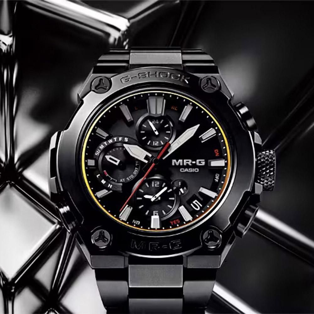 G-SHOCKの最上級ライン「MR-G」のミッドサイズモデルです。 独自の小型化技術により腕に馴染むサイズ感を実現すると共に、文字板はミニマルデザインに仕上げ、日常的な実用性を追求。チタンのケース・バンドにはDLC処理と深層硬化処理を施し、黒を基調とした配色を採用しました。黒の濃淡で表現する「墨の五彩」をイメージし、コンパクトでありながらMR-Gらしい威風堂々とした存在感を放ちます。また、標準電波、Bluetooth(R)による時刻修正に対応し、時刻精度も追求。スマートフォン連携による多機能の簡単操作も可能にしました。強さと美しさを宿した造形美と、信頼性を生み出す先進の機能が融合し、シンプル&コンパクトなスタイリングを実現したMR-Gです。