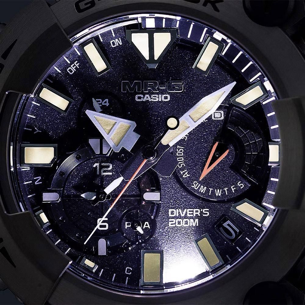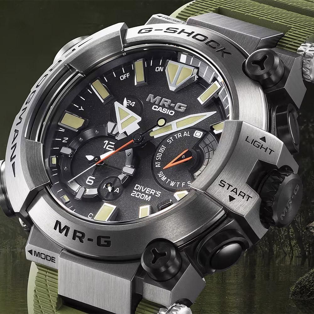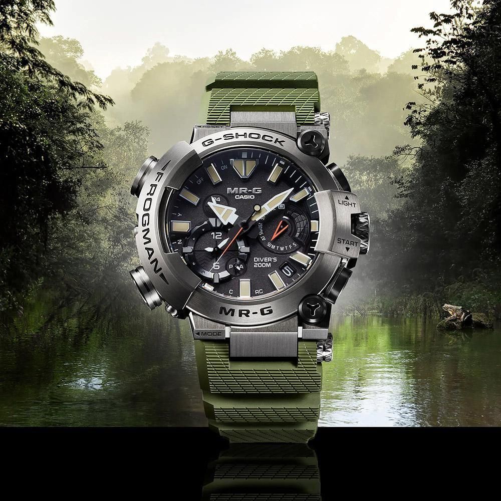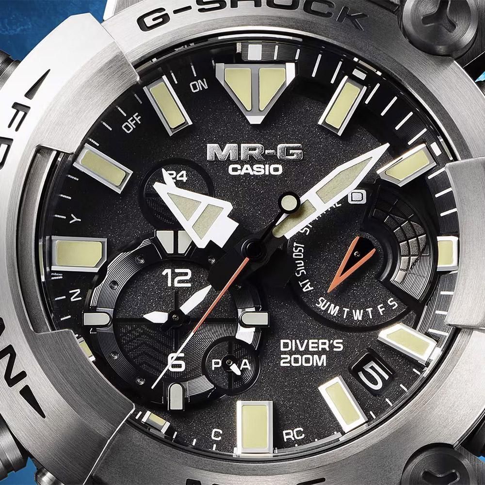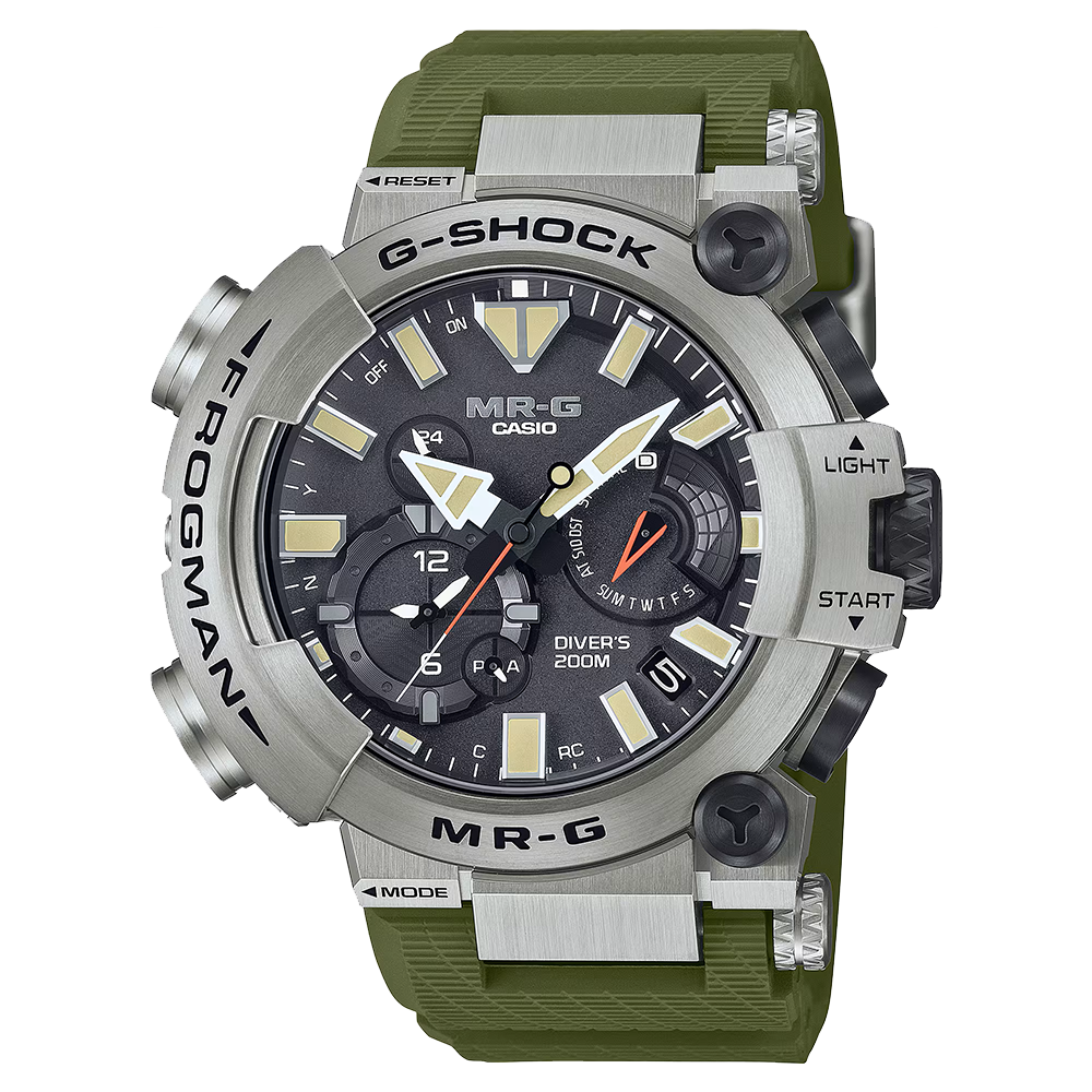 G-SHOCKの最上級ラインであるMR-Gシリーズ。ISO規格200m潜水用防水機能を持つ本格ダイバーズウオッチ「FROGMAN」にチタン外装を採用し、丹念な仕上げを施したMR-Gです。