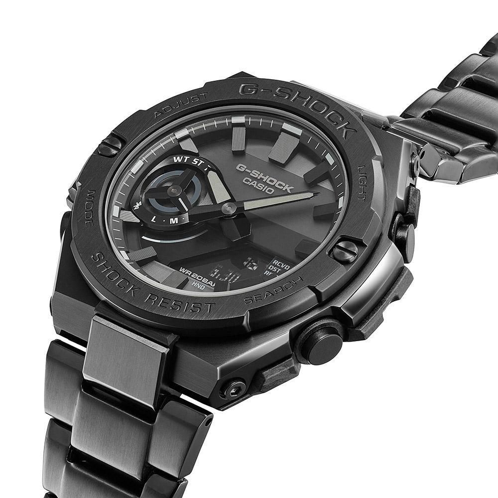 1983年の発売以来、飽くなき強さを求めて進化を続けるタフネスウオッチG-SHOCK。薄型モジュールとカーボンコアガード構造により、スリムでデザイン性の向上したG-STEEL GST-B500です。GST-B500は、モジュールに使用される部品の小型化と高密度実装技術により薄型化を実現。Bluetooth?とソーラーという高機能性に加えて、耐衝撃性能もキープしています。また、力強いソリッド感を持ちながら様々なファッションスタイルにもフィットするように洗練されたデザインに仕上げました。メタルと樹脂という異素材を融合し、タフネスとデザイン性を両立したG-STEELシリーズです。