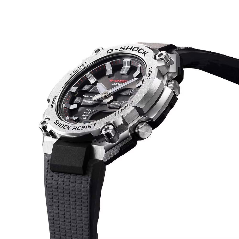 1983年の発売以来、飽くなき強さを求めて進化を続けるタフネスウオッチG-SHOCKから、メタルと樹脂の異素材を融合した小型ケースのモデルです。G-STEELの特徴であるメタルベゼルの別体構造を踏襲しつつ、シリーズ最薄の11.4mmを実現し、ケース径も人気のあるおよそ42φまで小型化を実現しました。メタルのベゼルにブラック文字板、プラスチックバンドと、カジュアルシーンでもビジネスシーンでも幅広く活用できるデザインに仕上げました。タフネスとデザイン性を両立した、G-STEELシリーズで、幅広くご利用いただけるクールなデザインとなっております。